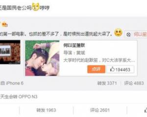 30日,王思聰在微博曬出一張照片,照片里王思聰和黃曉明等人同時出現,王思聰調侃《何以笙簫默》:“這是我出演的第一部電影。也抓的差不多了,是時候我出道挑起大梁了。” 微博截圖 隨后,楊冪轉發王思聰微博回應:“真以為自己還是國民老公嗎?哼哼。”此微博一出,不少網友紛紛圍觀,有網友評論:“王思聰已經哭暈在...