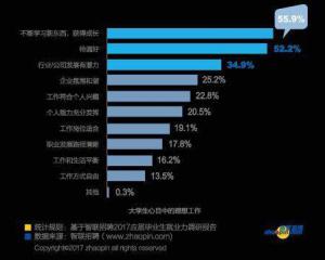 根據調查,95后畢業生越來越多擁有自己對公司的價值判斷,在對今年畢業生的調查中發現,越來越多畢業生敢于追求當下最熱的封口,共享單車、知識付費、在線教育等。2017年,首家工作單位對于個人成長影響首次超過待遇,成為最理想工作的重要標準,有55.9%的畢業生將不斷學習新東西,獲得成長作為自己擇業的首要考...