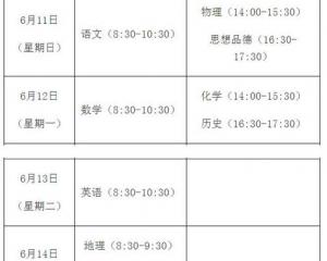2017年浙江金華中考時間及具體時間安排