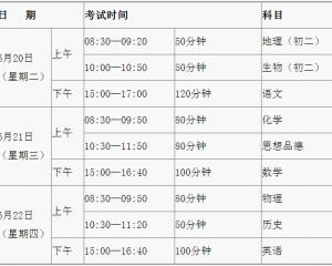 初中畢業生學業考試是義務教育階段的終結性考試,目的是全面、準確地反映初中畢業學生在學科學習目標方面所達到的水平。根據廣東省教育考試院統一安排,我市初中畢業生學業考試具體時間如下表: