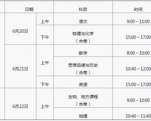 2017年浙江湖州中考考試時間及科目安排公布